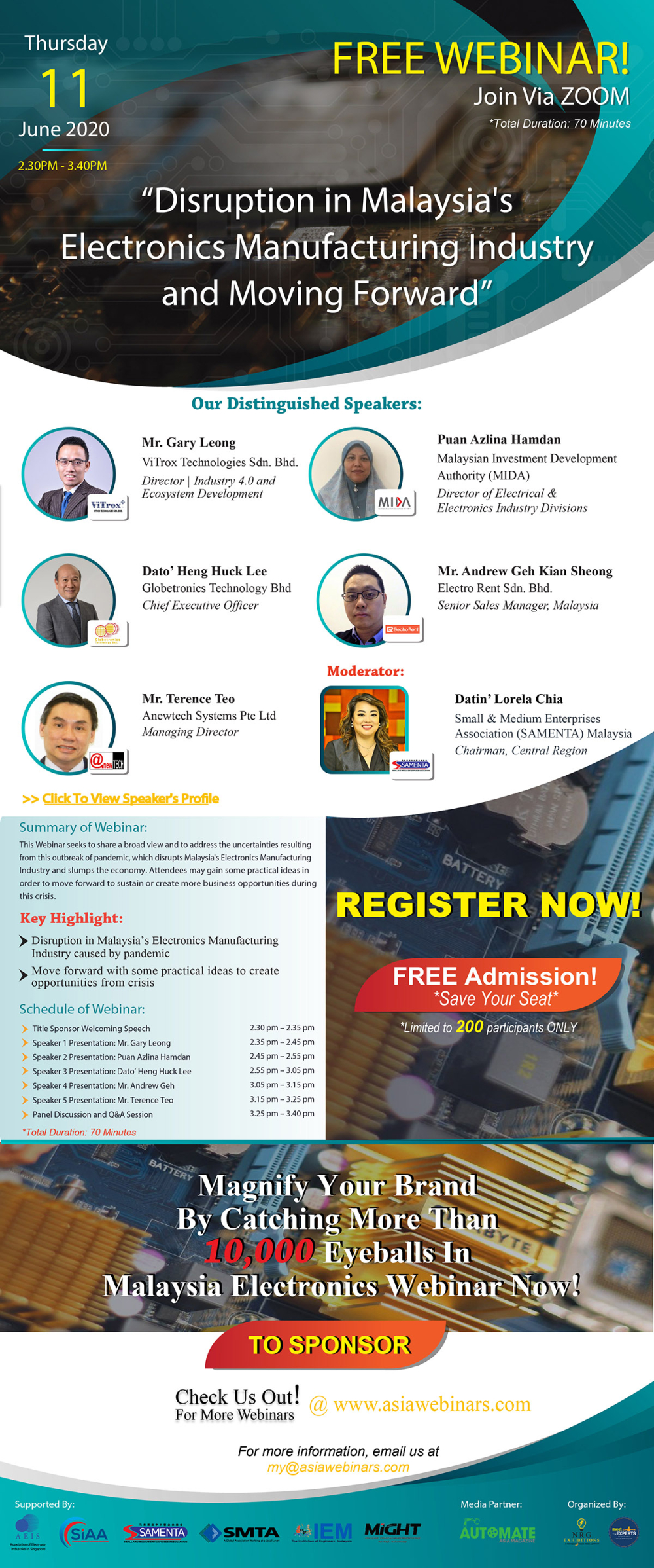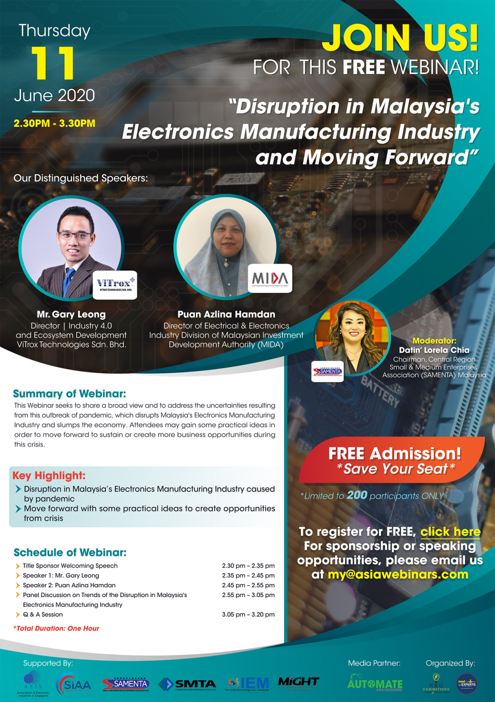 Malaysia Electronics Webinar: “Disruption in Malaysia's Electronics Manufacturing Industry and Moving Forward", 11 JUNE 2020 @ 2.30PM